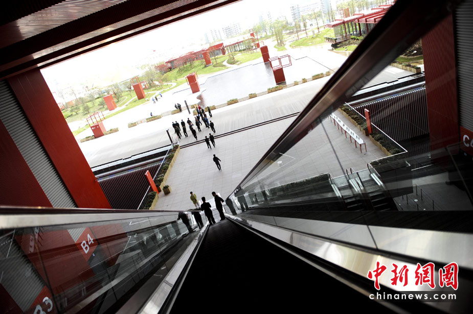 4月27日,从上海世博园中国馆滚梯上俯瞰园区。中新社发 廖攀 摄
