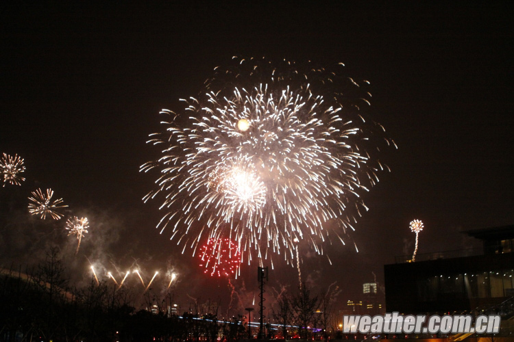 2010年4月27日,上海世博会开幕式彩排顺利进行。图为美丽的烟花。卞赟 摄