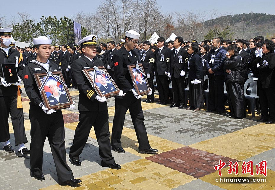 4月29日上午,韩国“天安”舰遇难官兵遗体告别仪式在平泽海军第二舰队司令部安保公园举行。韩国总统李明博携夫人参加告别仪式。图片来源:中国新闻网
