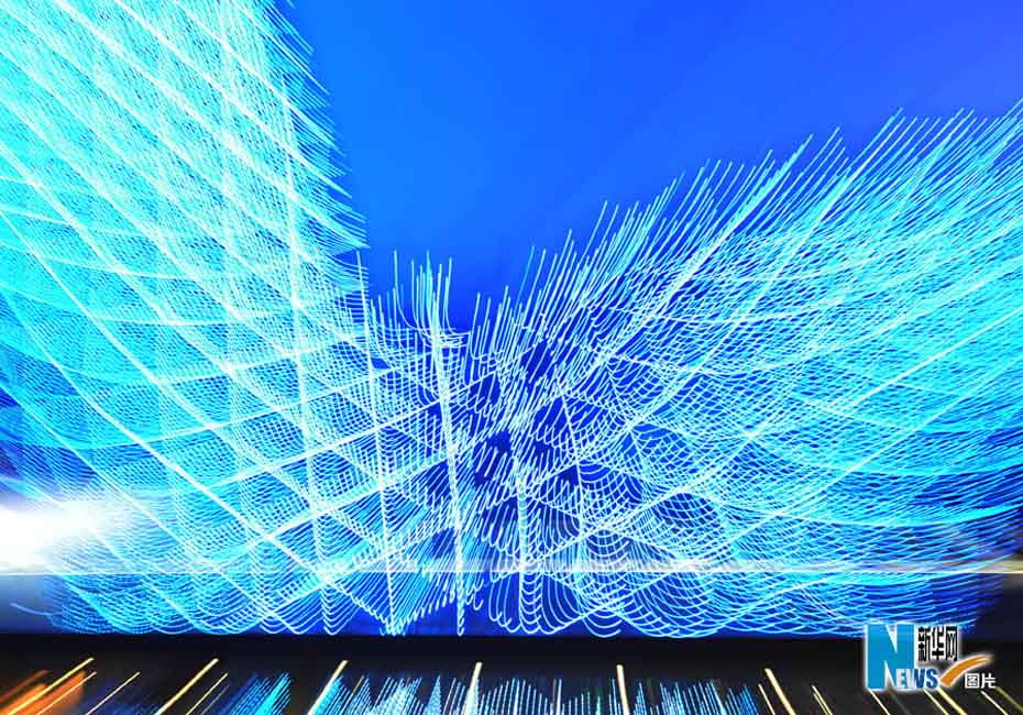 夜色下的世博园,迷离而梦幻。图为世博轴阳光谷。图片来源:新华网 郭毅摄