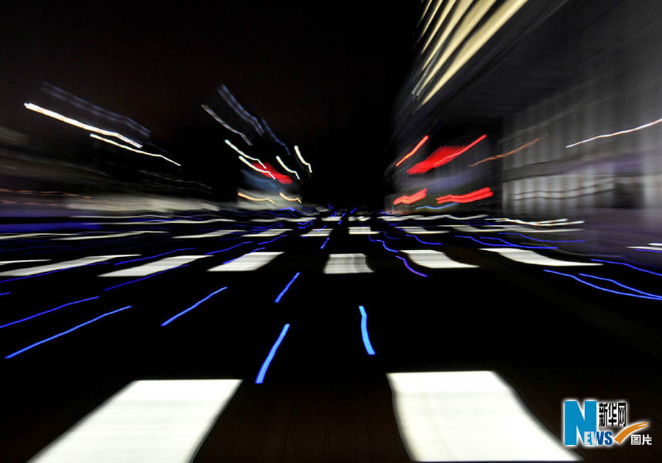 夜色下的世博园,迷离而梦幻。图为媒体中心。图片来源:新华网 郭毅摄