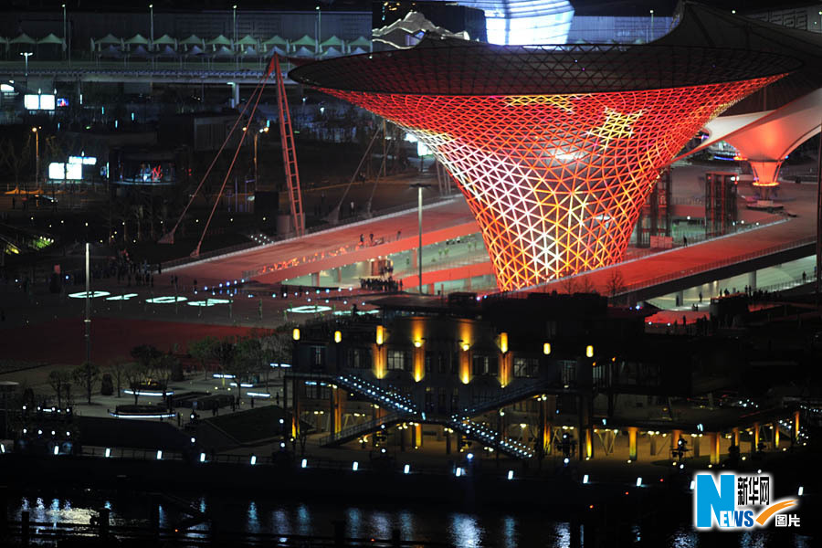 4月30日,中国2010年上海世博会开幕。图为世博轴亮灯。裴鑫摄