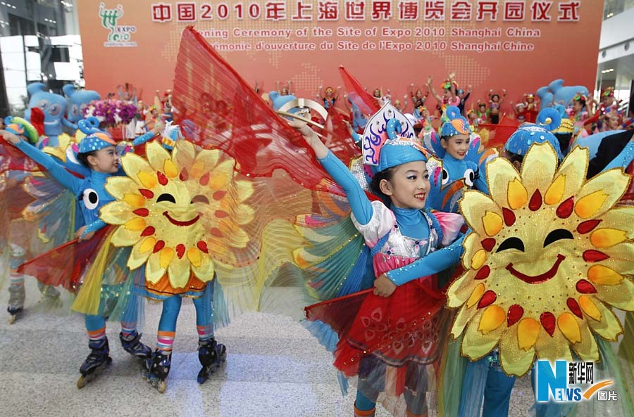 5月1日,中国2010年上海世博会开园仪式在上海世博园世博中心举行。这是小朋友们在开园仪式上表演。裴鑫摄(新华网)