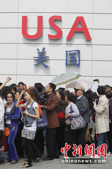 5月1日,上海世博会正式开园迎客,首批游客入园参观。图为在美国馆外排队的游客。