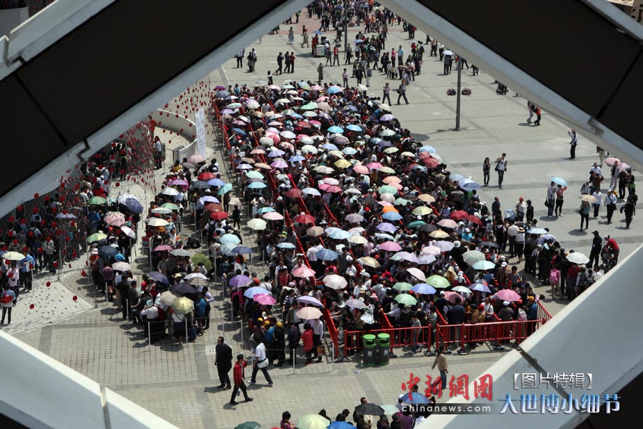 5月1日,上海世博会正式开园,当日有20万人次的游客参观了世博园。世博首日,许许多多的小细节都带给人一种全新的体验。图为上海世博会开园首日游人如潮,各个国家馆外都排起了等候参观的长队。中新社发 汤彦俊 摄