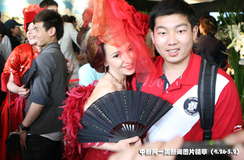 5月1日(周六),上海世博会开园。法国美女与中国小伙“亲密接触”,尽显法兰西浪漫风情。