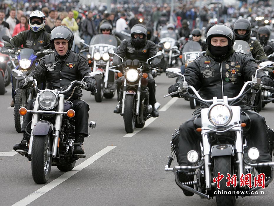 当地时间5月1日,陶宛首都维尔纽斯市,数千摩托手举行了机车大游行。图片来源:中国新闻网
