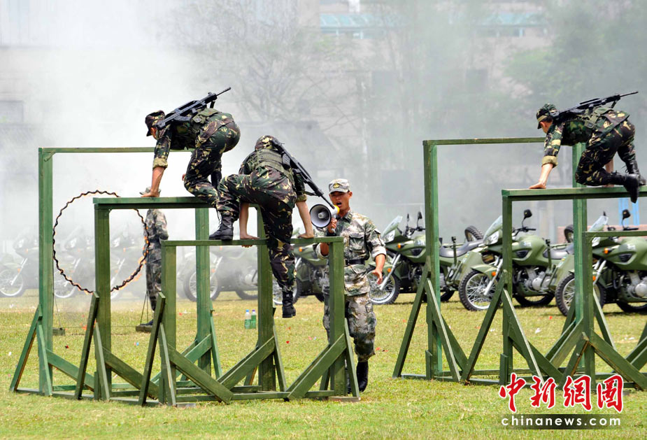 为庆祝“五一”国际劳动节,进一步增进与香港社会各界相互沟通与交流,中国人民解放军驻香港部队5月2日开放了石岗军营。图为驻港部队精彩的表演。 中新社发 邓庆乐 摄