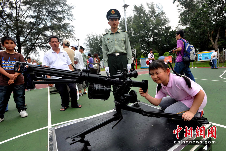 为庆祝“五一”国际劳动节,进一步增进与香港社会各界相互沟通与交流,中国人民解放军驻香港部队5月2日开放了石岗军营。图为香港市民近距离参观武器展示。 中新社发 邓庆乐 摄
