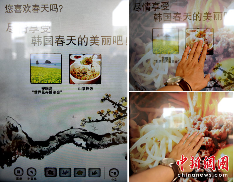 互动触摸屏,可以浏览韩国美丽风光和美食文化。中新网记者 王红纲 摄
