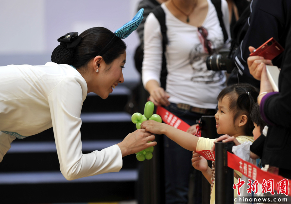 温柔美丽的韩国馆礼仪小姐。中新网记者 王红纲 摄