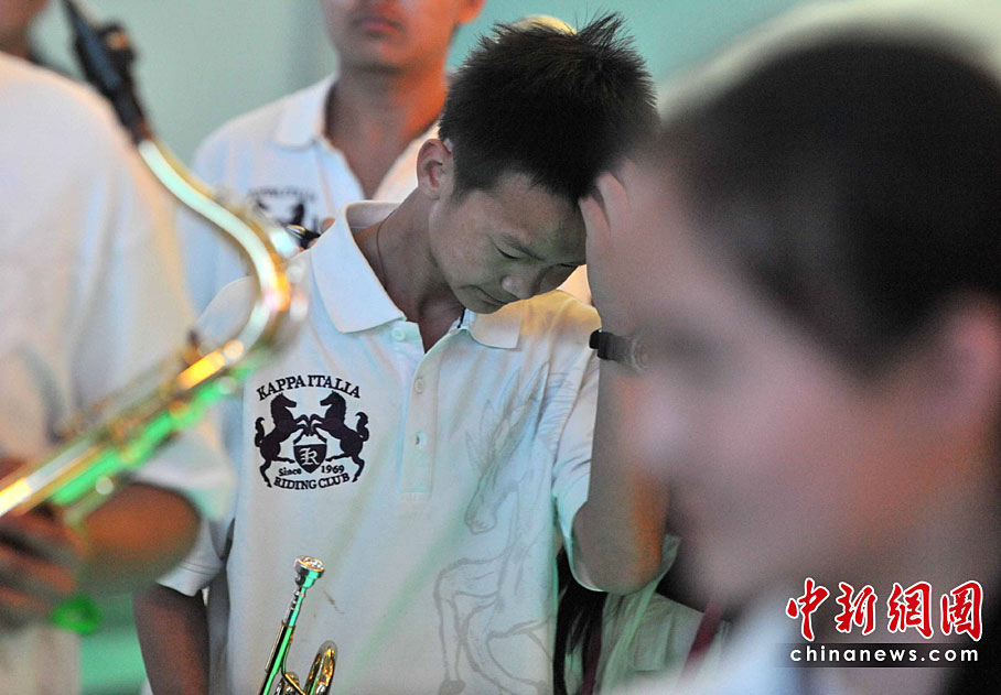5月2日清晨,来自玉树地震灾区结古镇的藏族小乐手巴东珠,含着姐姐在地震中不幸遇难的悲痛心情,与小白杨中学生管弦乐团来到上海世博会,为中国青海馆观众献上一曲《在那遥远的地方》。他悲欢交融的情怀和演艺,感动全场。巴东珠之前还是青海省人民医院为地震伤员做藏语翻译的志愿者。中新社记者 贾国荣 摄