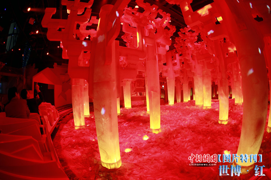 红色象征着热量与活力,红色也象征着兴奋与激情,在世博园区内游览,总会有一抹浓艳的红色闯入到记者镜头之中,让世博变得更加火辣。图为中国馆内一角。中新社记者 盛佳鹏 摄