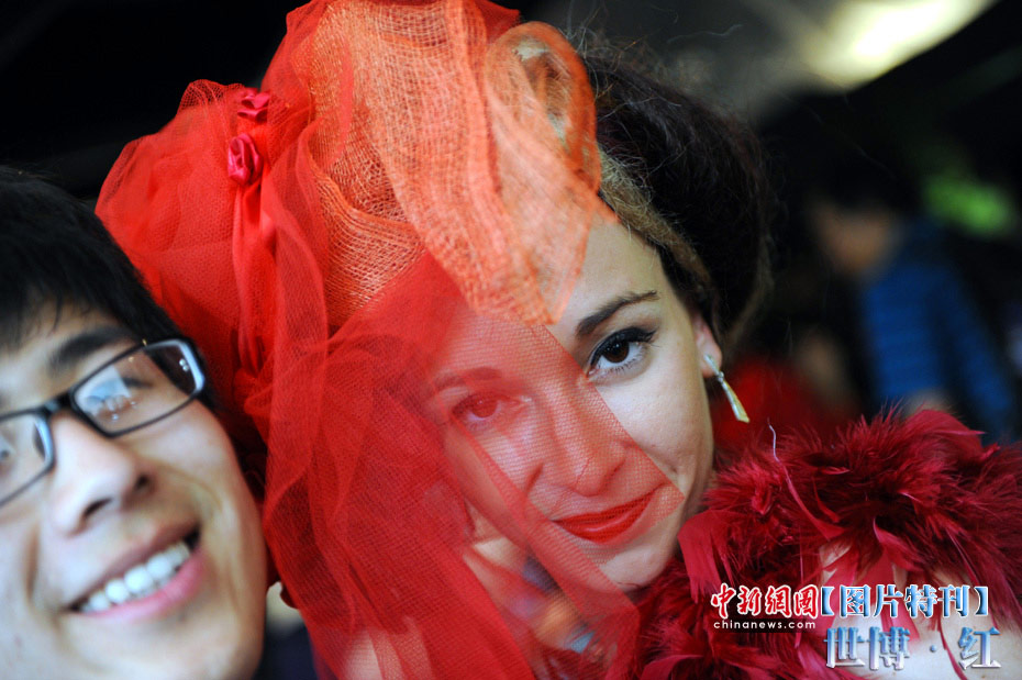 红色象征着热量与活力,红色也象征着兴奋与激情,在世博园区内游览,总会有一抹浓艳的红色闯入到记者镜头之中,让世博变得更加火辣。图为法国馆工作人员与游客合影。中新社记者 廖攀 摄