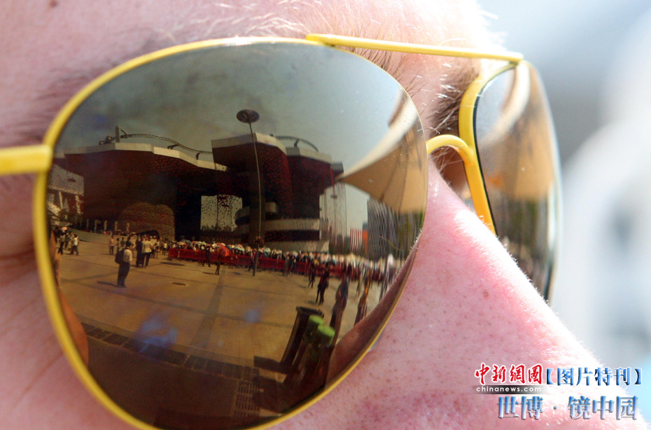 世博园开园3天,天气一直晴热,不少游客带起墨镜来遮挡刺目的阳光,从镜片的折射中看世博园,别有一番趣味。中新社记者 汤彦俊摄