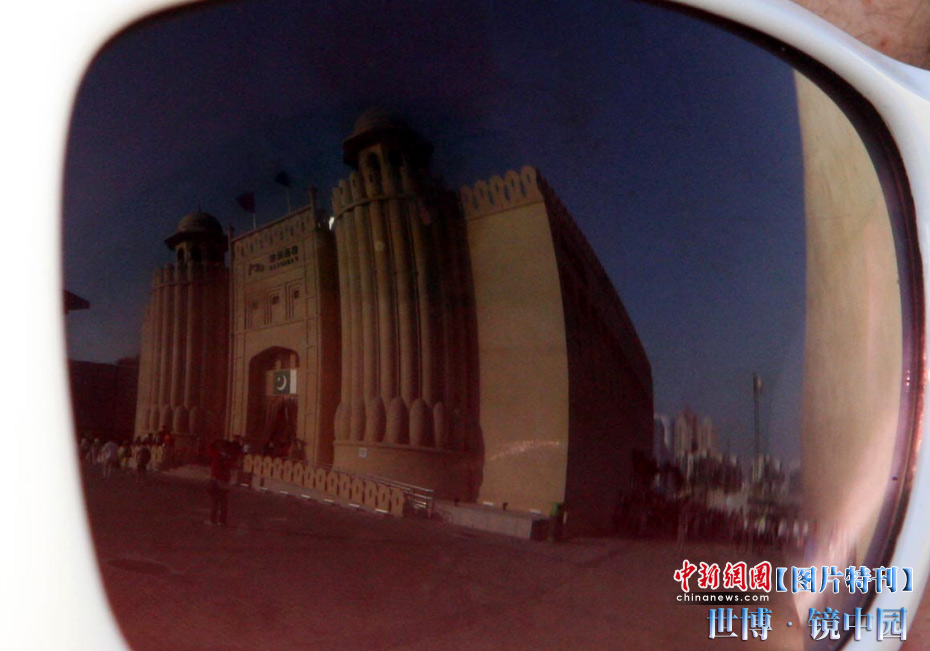 世博园开园3天,天气一直晴热,不少游客带起墨镜来遮挡刺目的阳光,从镜片的折射中看世博园,别有一番趣味。中新社记者 汤彦俊摄