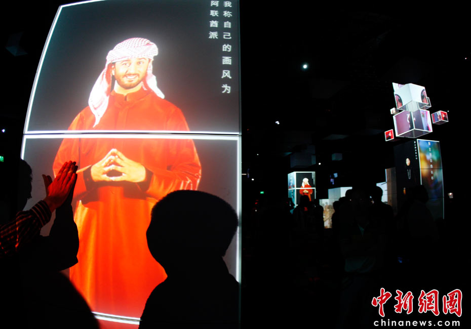 2010年5月4日,上海世博园区内的阿联酋馆,虚拟解说员为游客介绍阿联酋的历史、文化等。中新社发 盛佳鹏 摄