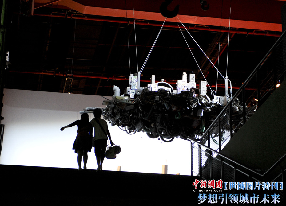 上海世博会城市未来馆位于E片区,馆内的展示以互动方式开始,邀请参观者畅想未来的城市,然后运用影片、书籍和雕塑等方式,体现历史上人们对未来城市的梦想、设计与实践,表明未来城市建立在今日挑战的基础上,并且畅想未来城市的各种可能,阐述推动人类进步永恒不变的精神元素。展望未来城市,一方面人类城市的种种现实、挑战和危机推动人们在思考中寻找城市的出路,另一方面人类不懈的创新能力和科技的飞速进步也把人们引向不可思议的未来城市。中新社记者 廖攀 摄