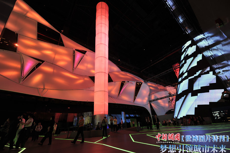 上海世博会城市未来馆位于E片区,馆内的展示以互动方式开始,邀请参观者畅想未来的城市,然后运用影片、书籍和雕塑等方式,体现历史上人们对未来城市的梦想、设计与实践,表明未来城市建立在今日挑战的基础上,并且畅想未来城市的各种可能,阐述推动人类进步永恒不变的精神元素。展望未来城市,一方面人类城市的种种现实、挑战和危机推动人们在思考中寻找城市的出路,另一方面人类不懈的创新能力和科技的飞速进步也把人们引向不可思议的未来城市。中新网记者 王红纲 摄