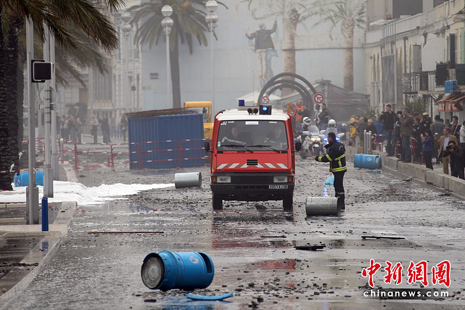 近日,在法国南部城市尼斯,巨浪袭击城市的海岸后造成城市道路瘫痪。法国南部部分地区遭遇大风和巨浪,使当地交通和供电受到不同程度的影响。图片来源:中国新闻网