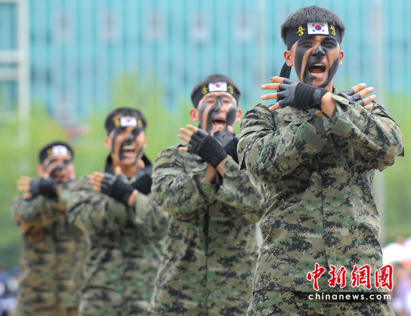 5月5日,韩国儿童节,韩国突击队员在国家战争博物馆为孩子们表演。