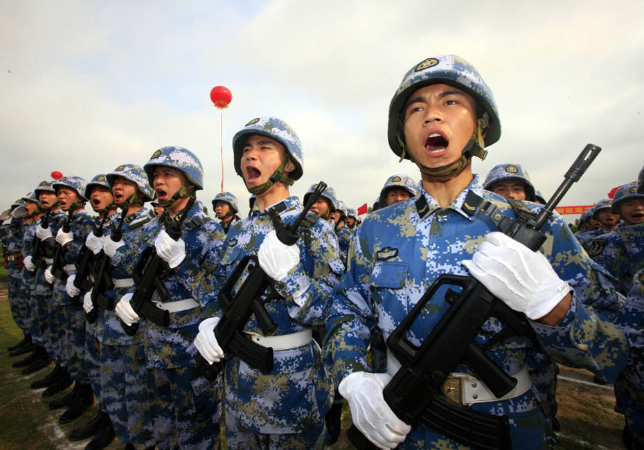 5月5日,海军陆战队员接受检阅。图片来源:新华网 查春明摄