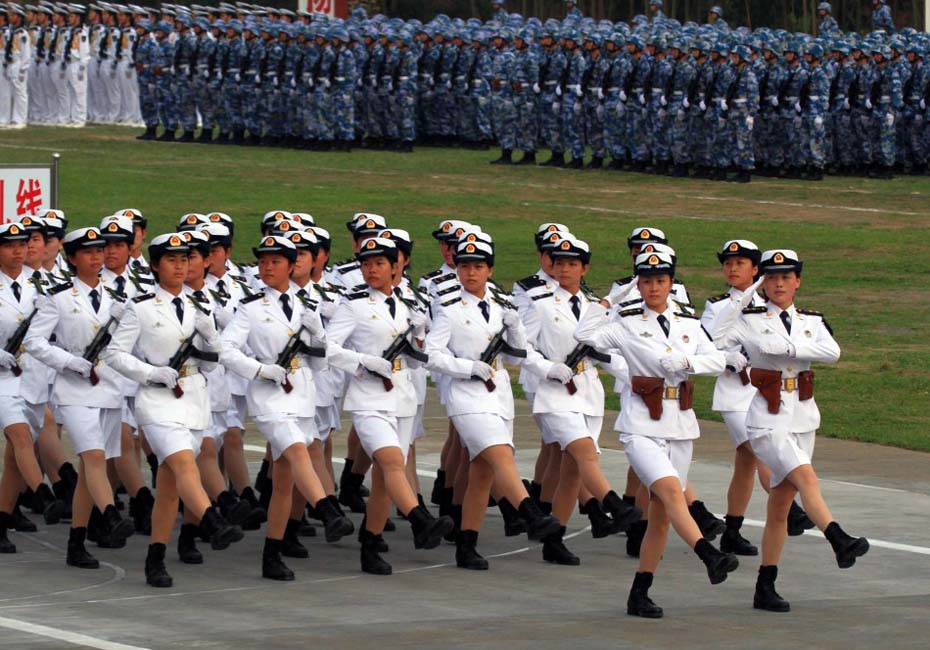 海军陆战队女兵方队通过主席台。图片来源:新华网 查春明摄