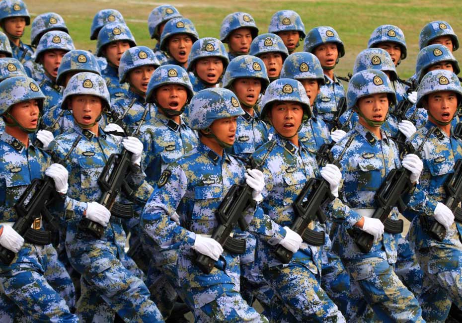 海军陆战队员通过主席台。图片来源:新华网 查春明摄