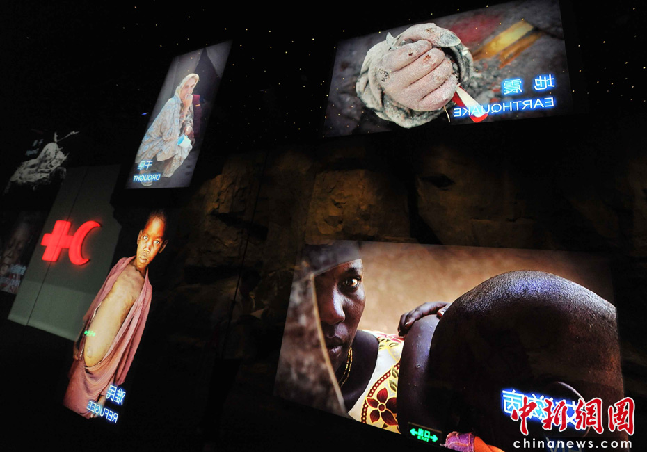 5月8日是上海世博会的红十字会和红新月会馆荣誉日,两会在简朴如医疗帐篷的馆里,运用声光电展示大量纪实图片,于大灾大难中显示救死扶伤的大爱,可歌可泣。这两个鲜红标志的人道救援组织,一百多年来遵循着坚定不移的宗旨——“经历战争与灾难的黑暗,我们更需要人道的光芒”。世界的未来,还将依靠它红色的光明,去驱散天灾人祸的阴影。中新社发 贾国荣 摄