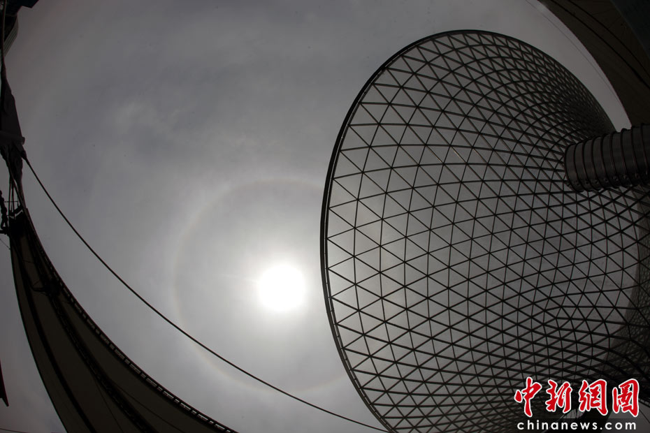 图为世博轴上空的日晕。中新社记者 盛佳鹏 摄