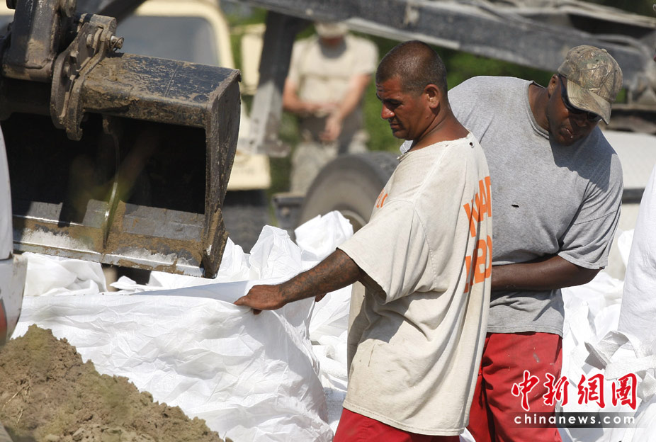 5月11日,美国路易斯安那州,国民警卫队用直升机向河口运载沙袋,试图阻止海上的油污进入内河。