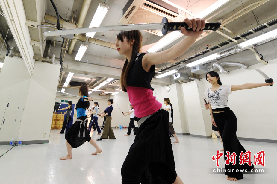 近日,在日本东京,众多白领女性学起了日本传统的武士刀,用来减压。