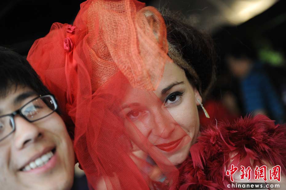 图为法国风情的礼仪小姐。 中新社记者 廖攀 摄
