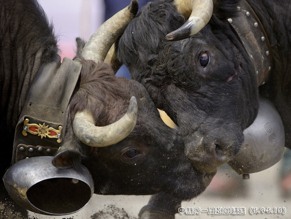 5月9日,在瑞士瓦莱州举行了一年一度的斗奶牛大赛。这项发起于1923年的赛事是为了挑选牛群中最强壮的“奶牛皇后”。图片来源:中国新闻网>>点击观看详细内容