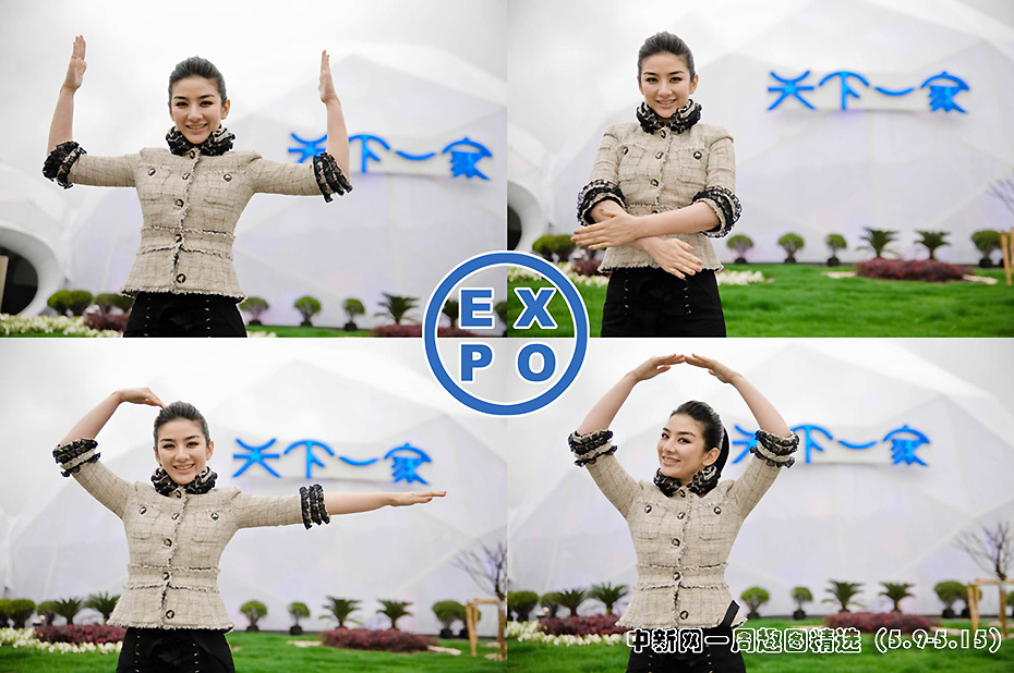 日前上海女孩黄奕来到世博馆“天下一家”未来馆门口拍摄一组手势大片,身体力行教大家如何演绎EXPO的含义。图片来源:中国新闻网>>点击观看详细内容