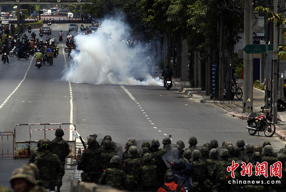 泰国政府军和反政府示威者5月14日深夜在曼谷爆发严重暴力冲突。曼谷紧急医疗机构15日称,截止当地时间早晨6时,冲突已导致16人死亡,至少141受伤,伤者中包括3名外国人。图片来源:中国新闻网