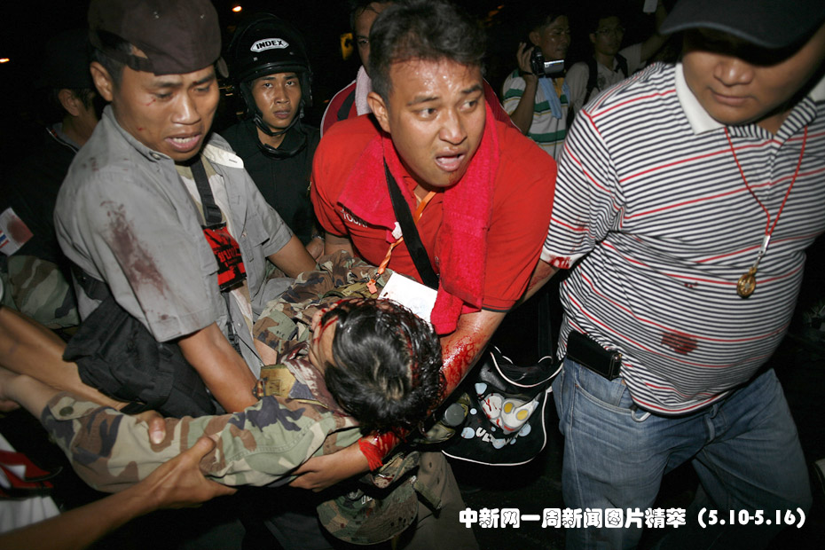 周四(13日),泰国军方出动装甲车和狙击手封锁红衫军示威地点,并截水截电,企图逼走示威者。红衫军营地之后传出连串枪声和至少4下爆炸声,据报造成至少1死20伤,其中支持红衫军的陆军少将卡迪亚头部中枪昏迷。