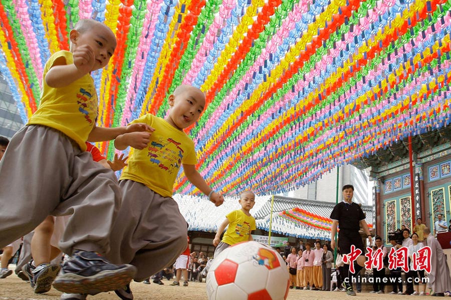 2010年5月15日,韩国首尔曹溪寺院举行了儿童足球赛,一群四五岁的孩子和小和尚参加了这场足球友谊赛。这场比赛是佛诞节活动的一部分,也是为了迎接2010世界杯足球赛的到来。Chung Sung-Jun