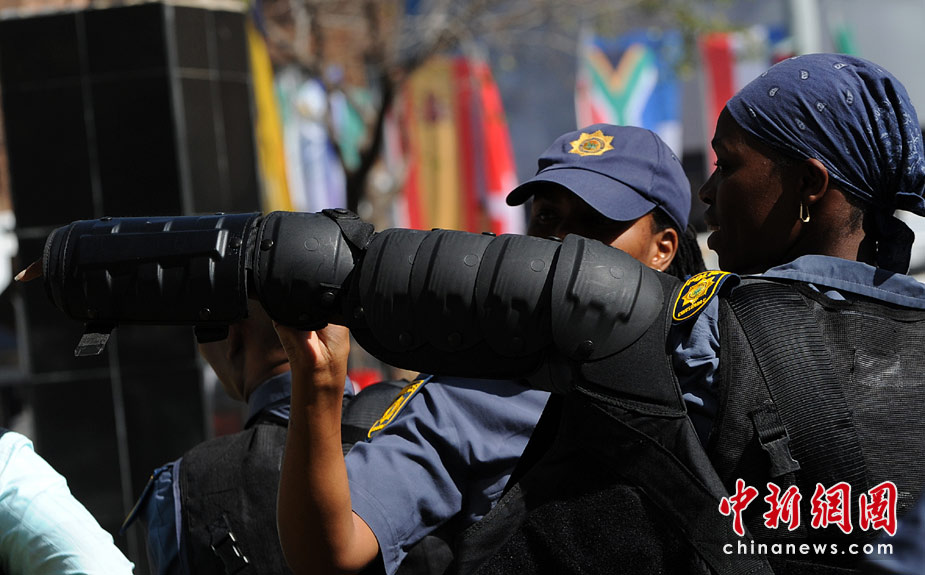 5月17日,南非约翰内斯堡,警察举行防暴演习,为下个月举行的世界杯做准备。 图片来源:中国新闻网