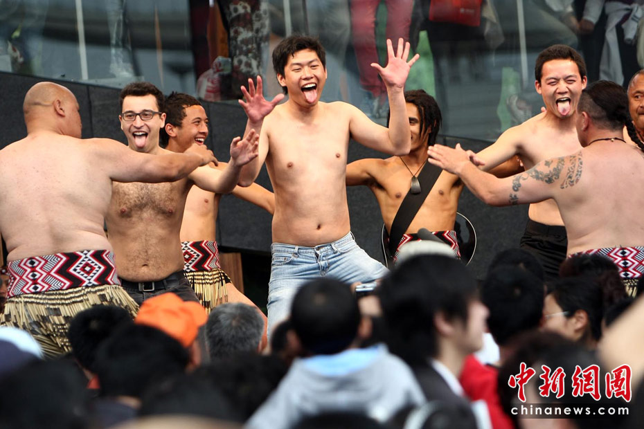 世博趣图:游客赤膊上阵学跳毛利舞