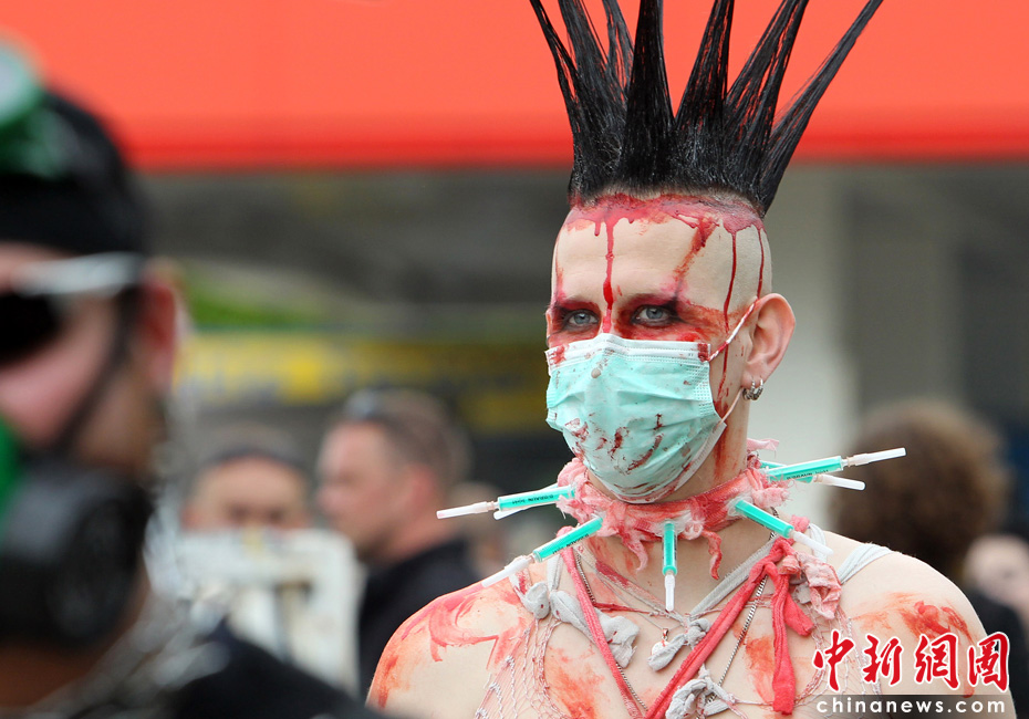 5月21日,德国莱比锡一年一度的哥特艺术节开幕。哥特节为哥特浪漫主义爱好者提供哥特式的音乐会、展览、聚会等活动,约有2万人参加了今年的哥特节。图片来源:中国新闻网