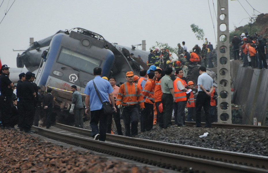 5月23日,2时10分,因连日降雨造成山体滑坡掩埋线路,由上海南开往桂林的K859次(编组17辆)旅客列车,运行至江西省境内沪昆铁路余江至东乡间(K699+700米处),发生脱线事故,机车及机后第1至9位车辆脱线,中断上下行线路行车。目前,初步确认3人死亡、10人受伤。事故正在进一步清理中。(图片来源:新华网)