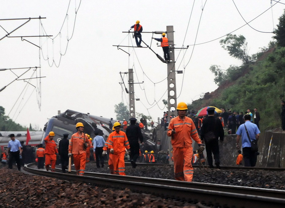 5月23日,2时10分,因连日降雨造成山体滑坡掩埋线路,由上海南开往桂林的K859次(编组17辆)旅客列车,运行至江西省境内沪昆铁路余江至东乡间(K699+700米处),发生脱线事故,机车及机后第1至9位车辆脱线,中断上下行线路行车。目前,初步确认3人死亡、10人受伤。事故正在进一步清理中。(图片来源:新华网)