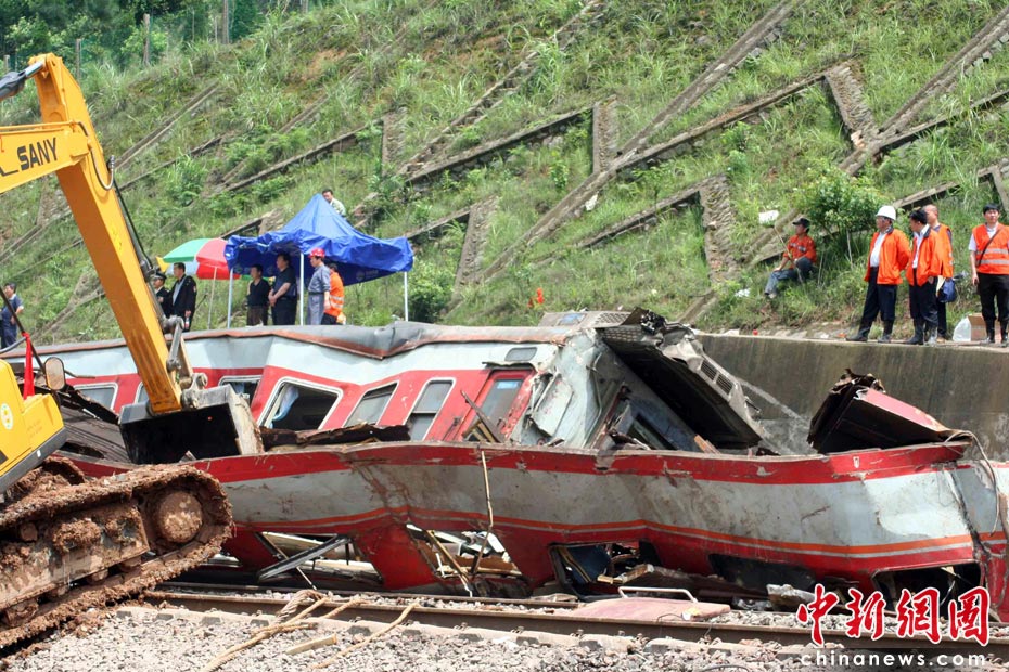 中新网东乡5月23日电(艾永全 何柳斌 刘占昆)23日下午14时,距离沪昆铁路客运列车脱线事发已经12小时,武警、消防、医护、交警、特警仍在事故现场紧急救援。 艾永全 摄
