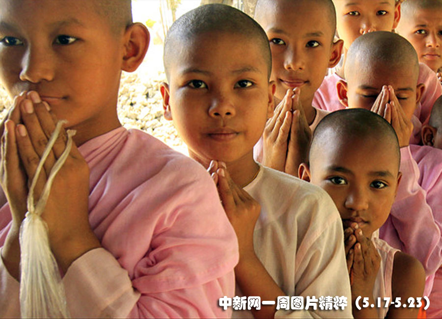 近日在缅甸仰光,孤儿们在寺院内排起长队集体接受捐赠食物。大约300多名孤儿住在这座寺院内。