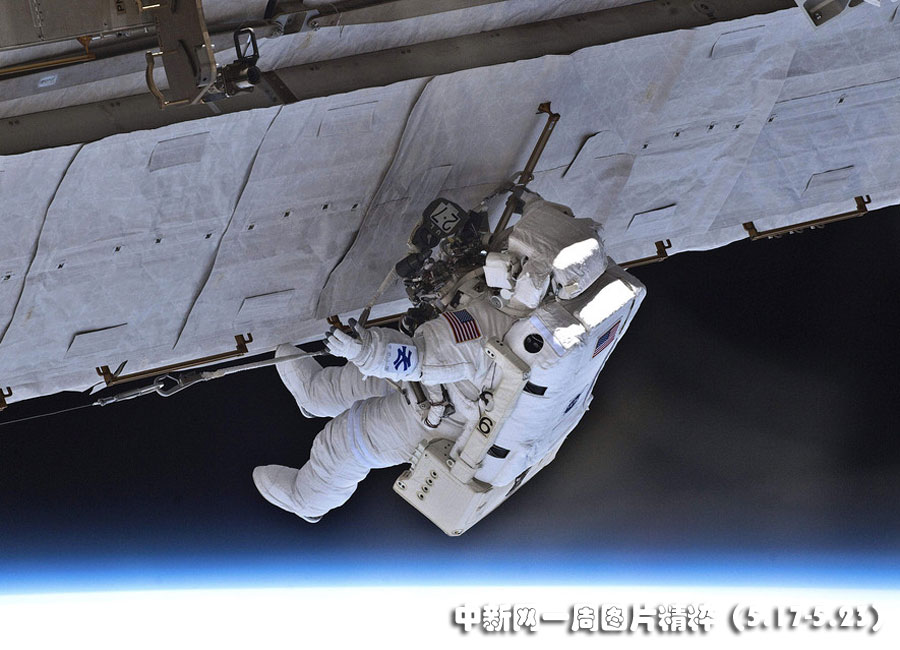 5月17日,“亚特兰蒂斯”号航天飞机宇航员加雷特·赖斯曼和史蒂夫·鲍恩进行了与国际空间站对接后的首次太空行走。