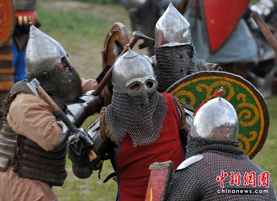 5月22日,在乌克兰基辅郊区举行的基辅罗斯节表演上,演出者再现了十三世纪的基辅罗斯战役历史场面。图片来源:中国新闻网