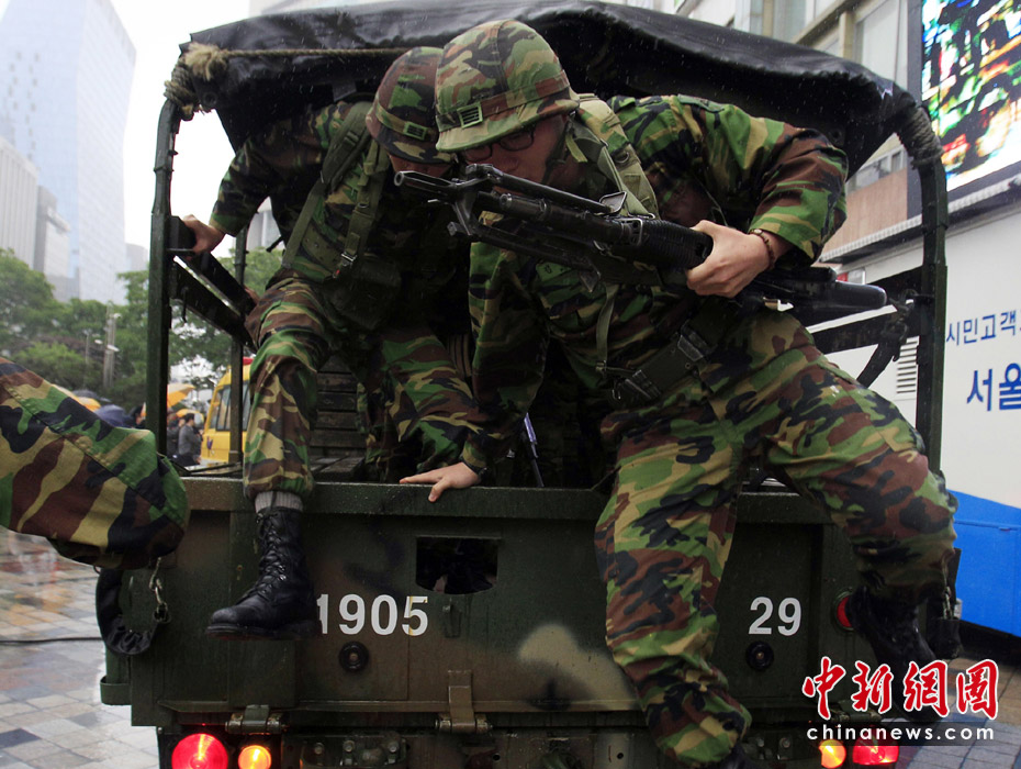 5月24日,韩国军队在靠近韩朝非军事区的扬口举行军事演习。图片来源:中国新闻网