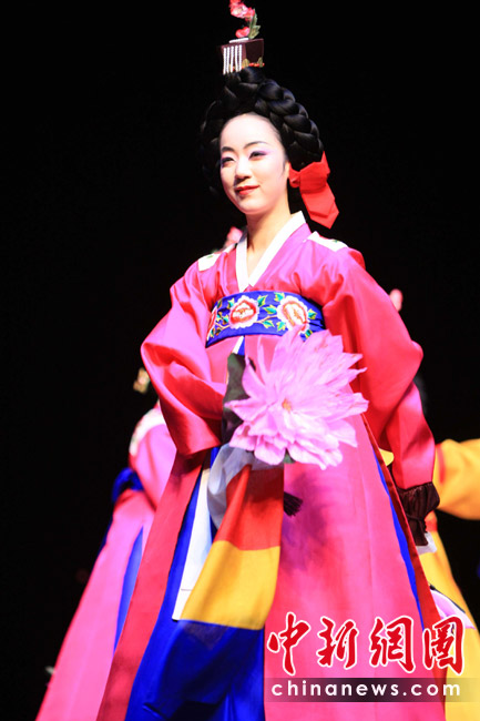 5月26日,韩服时装秀在上海世博会上演,其宫廷服装为别致内容之一。当日是世博会韩国馆日,韩国举行多项文艺表演推广该国文化。中新社发 潘索菲 摄