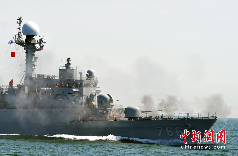 韩国军舰举行大型海上军事演习